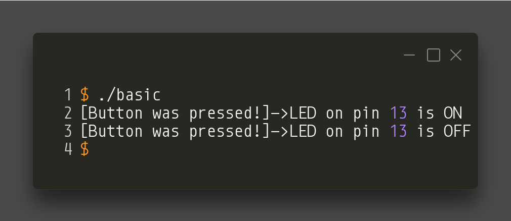 std::cout << "LED on pin " << (int)m_pin << " is OFF\n";