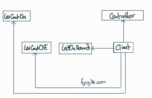 • Líneas 14 a 16: El constructor obliga a recibir un receptor válido (esto es, del tipo ILED). Para este ejemplo no podríamos recibir una referencia a motores o elefantes (a menos que un elefante sepa cómo responder a los mensajes on() y off()). Sabemos que cualquier objeto que implemente a la interfaz ILED responderá a los mismos mensajes, sin sorpresas.